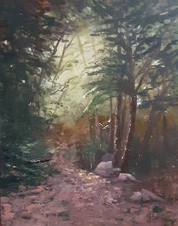 This painting hangs in my sister's home in Australia. She said it reminded her of a place of comfort here in Canada, the country in which she was born. It is an example of how the use of paintbrush combined with palette knife strokes can create the illusion of light and depth. I can do this for you, too, if you have a favourite photo that could be rendered using this technique. |